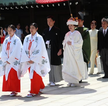 In contrast to India’s elaborate ceremonies, traditional Japanese weddings emphasize elegance, symbolism, and spiritual balance. Most Japanese weddings are Shinto ceremonies, held in shrines where purity and harmony are central themes.