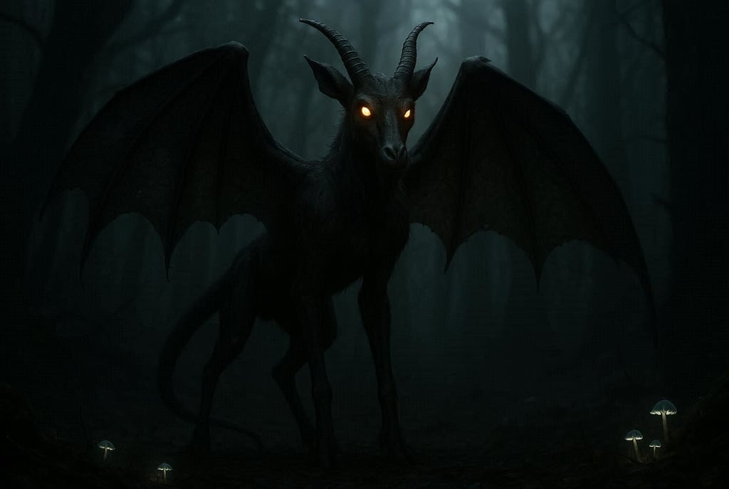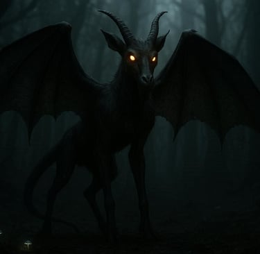 Witnesses often describe the creature as moving impossibly fast, capable of flying silently or galloping through the woods at night. Some report a sulfuric odor — a classic hallmark of demonic entities.
